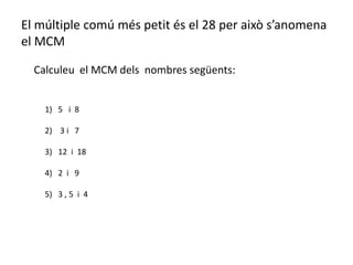 Busquem els divisors de 28 2 , 4 , 7 , 14 , 28