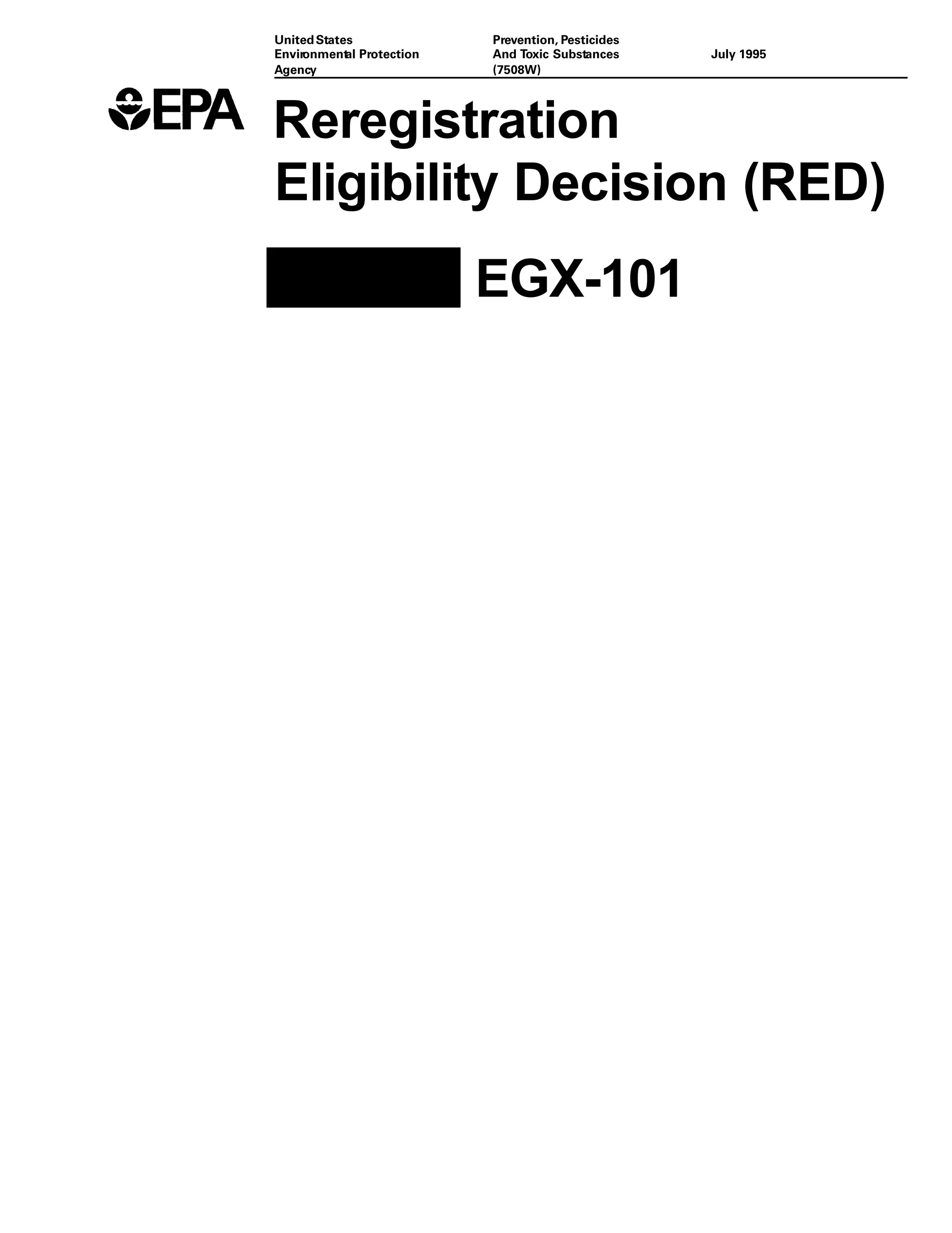 This document from the EPA summarizes their reregistration eligibility decision for the pesticide EGX-101. It includes an overview of the chemical, its uses, the regulatory history and data requirements. It also analyzes the human health and environmental effects. The EPA determined that some uses of EGX-101 are eligible for reregistration but others will be phased out unless the registrants can demonstrate the risks can be mitigated. Registrants must submit additional data and make labeling changes to comply with the EPA's regulations.