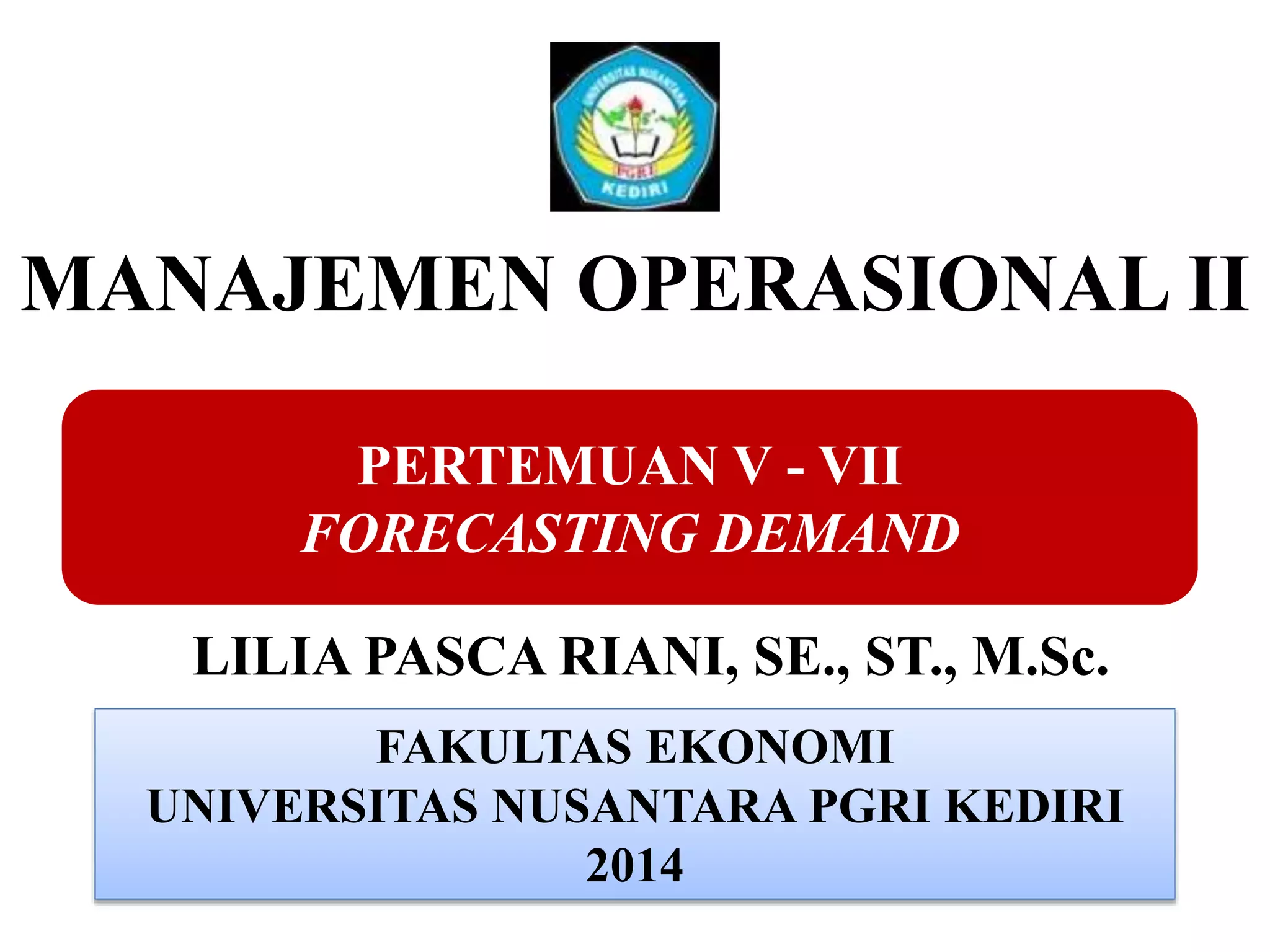 Dokumen ini membahas forecasting demand yang merupakan seni dan ilmu memprediksi permintaan di masa depan, terbagi menjadi peramalan jangka pendek, menengah, dan panjang dengan berbagai metode seperti pendekatan naif, rata-rata bergerak, dan penghalusan eksponensial. Setiap metode memiliki perhitungan dan rumus khusus, serta faktor kesalahan yang harus diperhatikan untuk meningkatkan akurasi peramalan. Contoh kalkulasi dan grafik disediakan untuk memperjelas penerapan berbagai teknik peramalan.