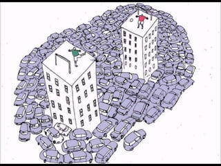 The document discusses mobility and accessibility, defining them as concepts and discussing their relationship. It argues that mobility itself is not the goal, but rather accessibility, which is about democracy and equity. It also emphasizes the importance of density, diversity, and investment in public transport, walking and cycling to promote sustainable mobility and quality of life.