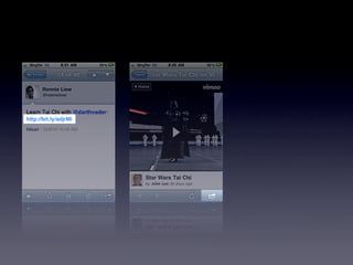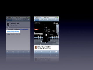 The document presents best practices for mobile application design and development, emphasizing the importance of understanding user needs, choosing the right platforms, and optimizing the user experience. Key points include avoiding common pitfalls such as assuming the necessity of an app, neglecting flexibility in design, and overloading users with information. It also highlights the significance of testing on actual devices and minimizing user input to enhance usability.