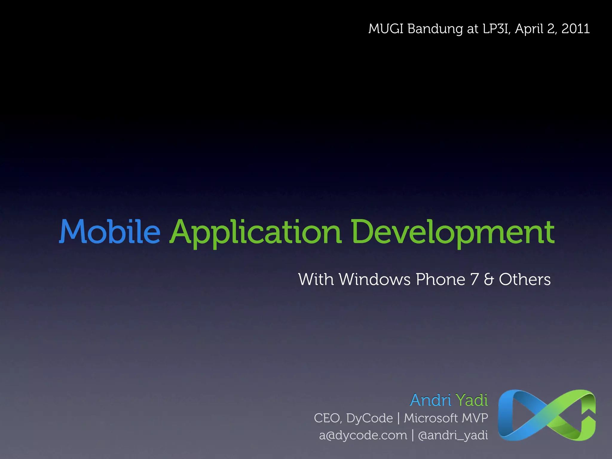 Andri Yadi gave a presentation on mobile application development at LP3I in Bandung, Indonesia on April 2, 2011. He discussed several mobile platforms including Windows Phone 7, Symbian, Android, iOS, and Java ME. He provided statistics on market share and the number of apps available for each platform. Yadi also covered the development tools, languages, and SDKs used to create native and web apps for each mobile operating system. He encouraged attendees to start developing for mobile platforms to capitalize on the growing mobile revolution.