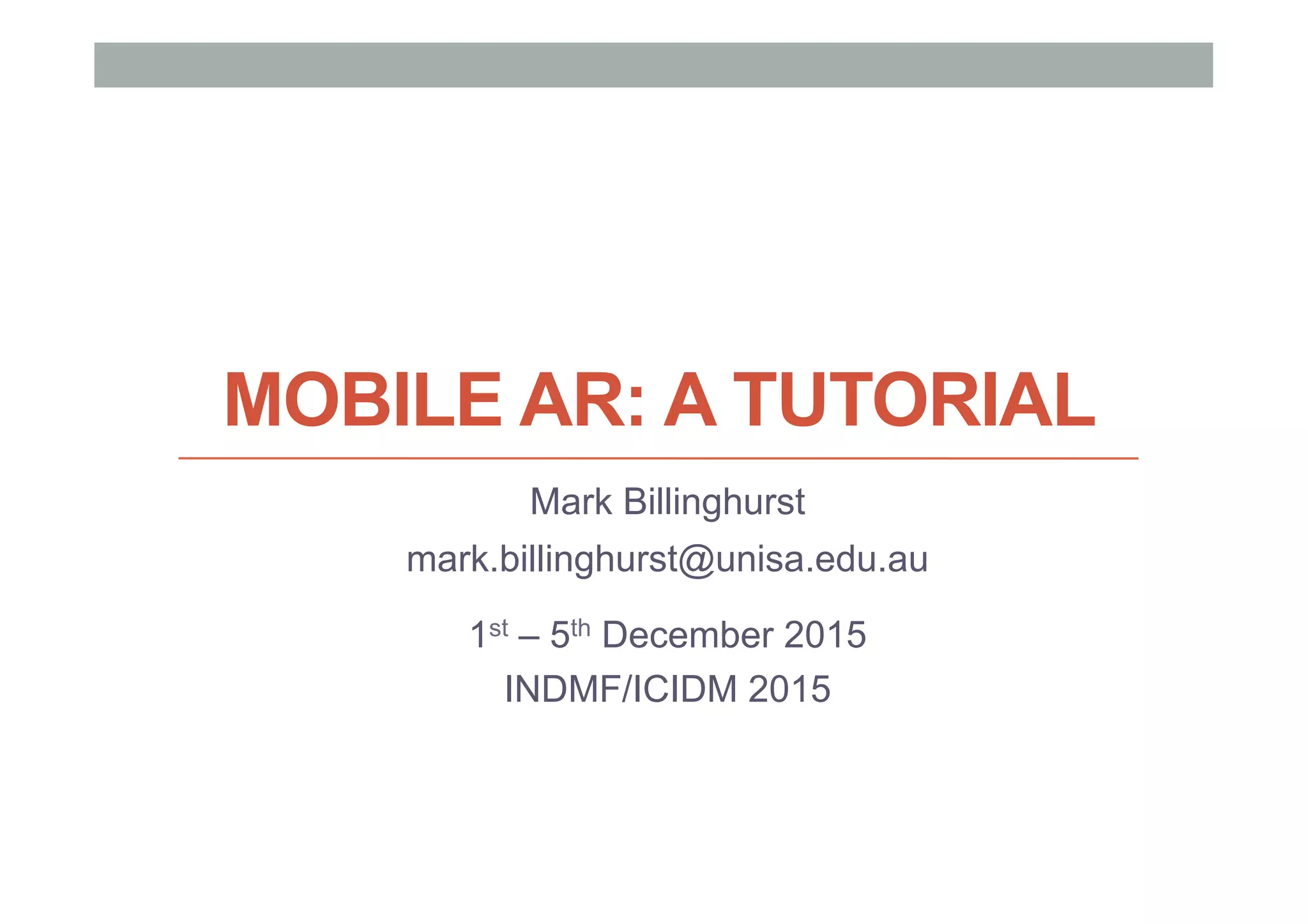 This document provides an overview of augmented reality (AR) and the Vuforia platform for building AR applications. It discusses key Vuforia features like image and object tracking. It also provides steps for setting up a Vuforia project in Unity, including importing the Vuforia Unity plugin, adding a tracking target, and deploying the built application to Android. Additional topics covered include interactive scripting, using Vuforia samples, and resources for further learning.