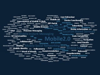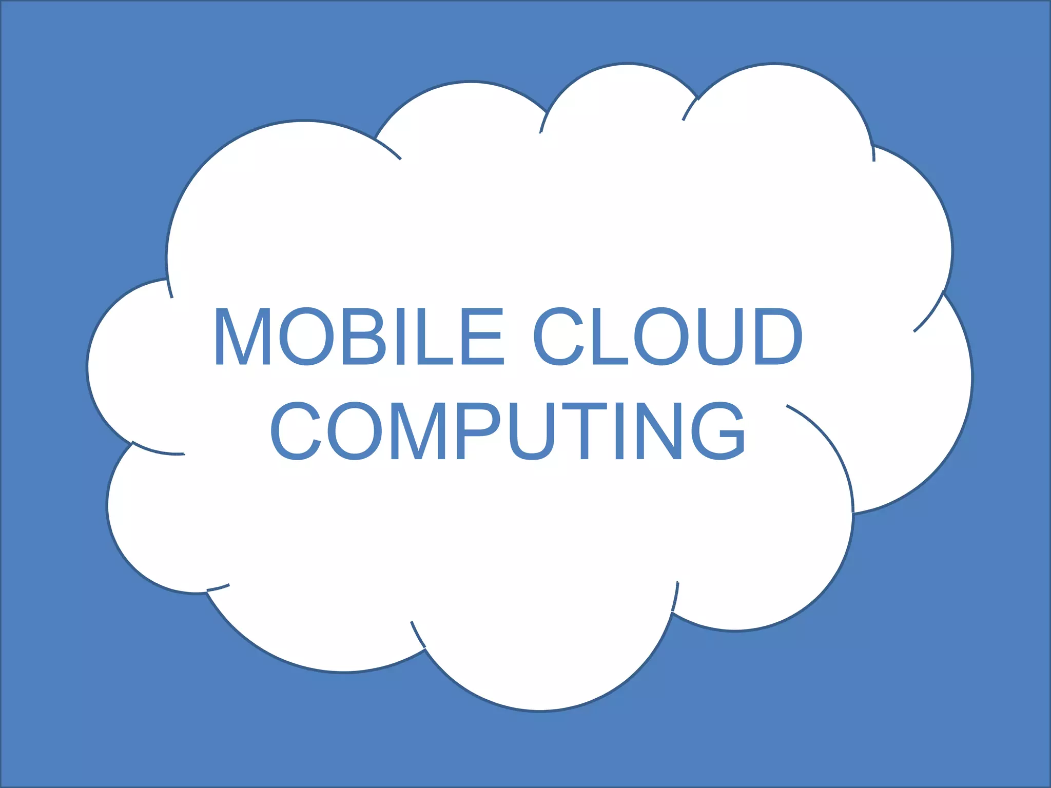 Mobile cloud computing provides access to information and resources through mobile phones by moving data processing from the phone to cloud servers. This overcomes limitations of mobile phones like limited storage, small screens, and flaky browsers/connections. Mobile cloud computing grew from 1998 to 2014, reaching billions of subscribers. It has potential to spread concepts widely, especially in Africa, by making technology more common and familiar. Mobile cloud computing will see more smartphones and sophisticated feature phones, with lower-end phones driving growth. Apps will be native or web-based, and networks will provide faster, more extensive connectivity.