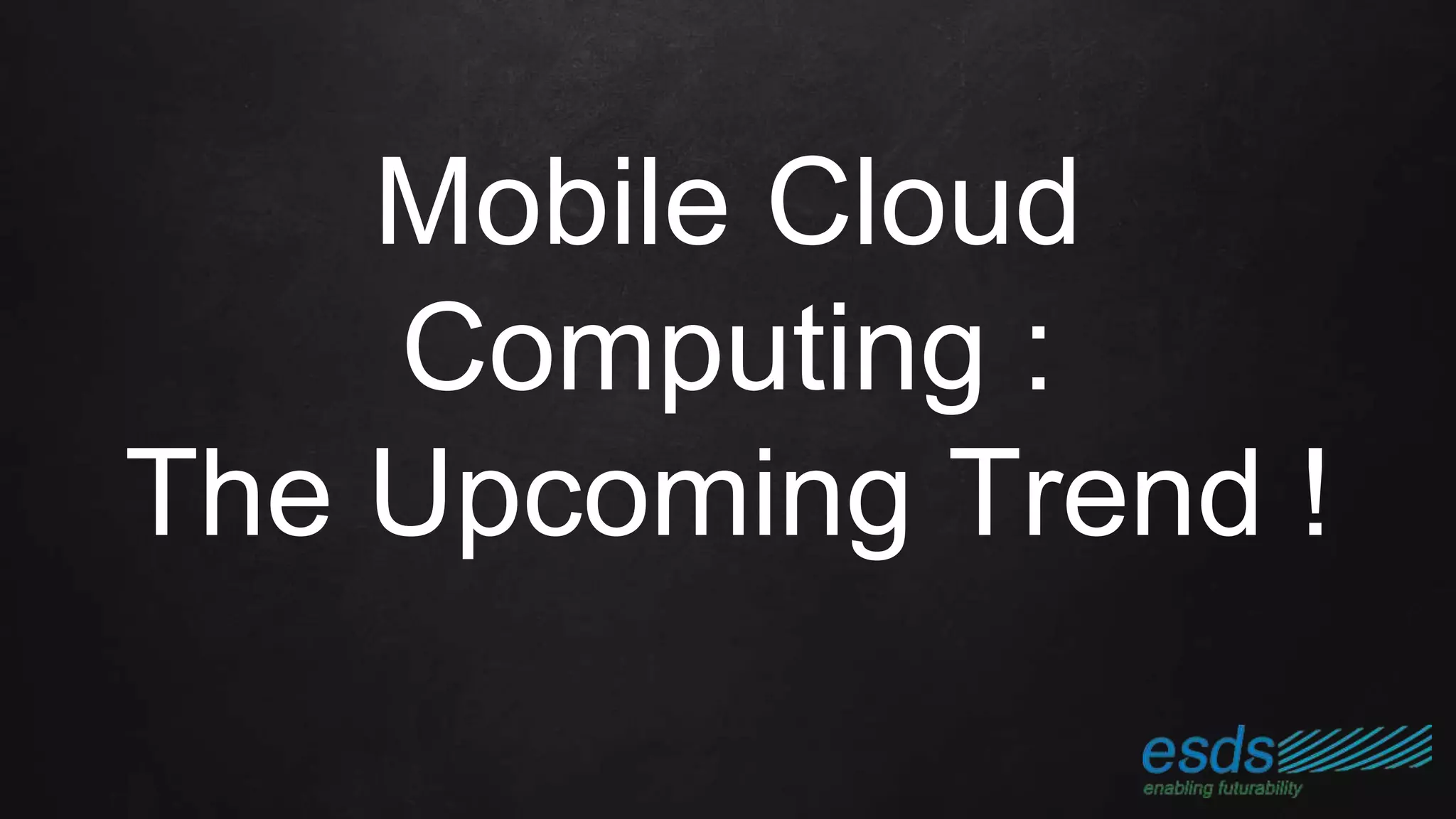 Mobile cloud computing combines cloud computing and mobile technology, allowing data storage and processing to occur outside of mobile devices. It provides users with cost-effective access to powerful computing resources, enhancing mobile device functionality and making information sharing simpler. This trend is poised to significantly impact the business economy by facilitating mobile commerce and enabling anytime, anywhere access for a mobile workforce.