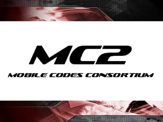 The document discusses the formation of the Mobile Codes Consortium (MC2) with the goals of advancing the widespread adoption of mobile codes through establishing standards for interoperability, ensuring a profitable business framework for growth, and educating the market. The MC2 aims to create a consortium and open standards approach to allow 2D barcodes to accelerate mobile internet adoption similar to how the web grew over the last ten years. The MC2 seeks involvement from companies across the mobile industry value chain.