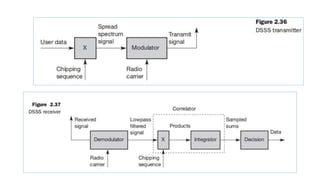 The document outlines the fundamentals of mobile computing, highlighting its growth due to technological advancements and increasing user mobility. It describes various categories and types of mobile and wireless devices, detailing their functionalities, communication layers, and modulation techniques. Additionally, it covers concepts of signal propagation, multiplexing, and spread spectrum communication, emphasizing their applications and advantages in mobile networks.