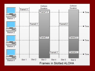 It then covers concepts such as carrier sensing, hidden and exposed terminals, and near and far terminals that create challenges for wireless networks. Finally, it introduces various multiple access methods including SDMA, FDMA, TDMA, and CDMA.