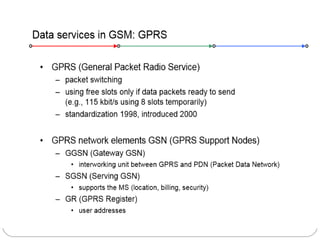 Mobile computing allows users to access network services from anywhere at any time using portable devices. It involves using computers while on the move, enabling connectivity and new applications anywhere infrastructure exists. Key challenges include disconnections, low bandwidth, security risks, and supporting a variety of devices. Future advances may include artificial intelligence, smaller devices through integrated circuitry, and faster processors. Open areas remain around interference, regulations, bandwidth limitations, and security in shared environments. Mobile generations have progressed from 1G analog cellular to 2G digital cellular to 3G supporting high-speed data and 4G aims for all-IP networks with speeds over 100Mbps.