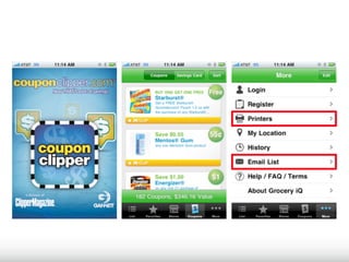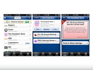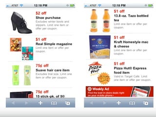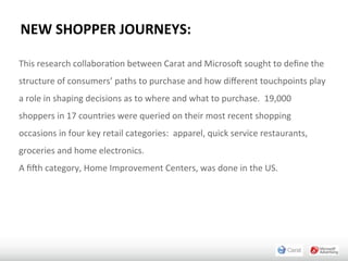The document outlines research findings on how mobile technology enhances point-of-sale experiences and influences consumer purchasing behaviors. Through qualitative and quantitative studies involving 19,000 shoppers across 17 countries, the research reveals that shoppers increasingly prioritize discounts and promotions while altering their purchase journeys to become more dynamic rather than linear. Additionally, it highlights the effectiveness of mobile couponing, particularly among younger demographics, and the challenges retailers face in integrating mobile solutions with existing systems.