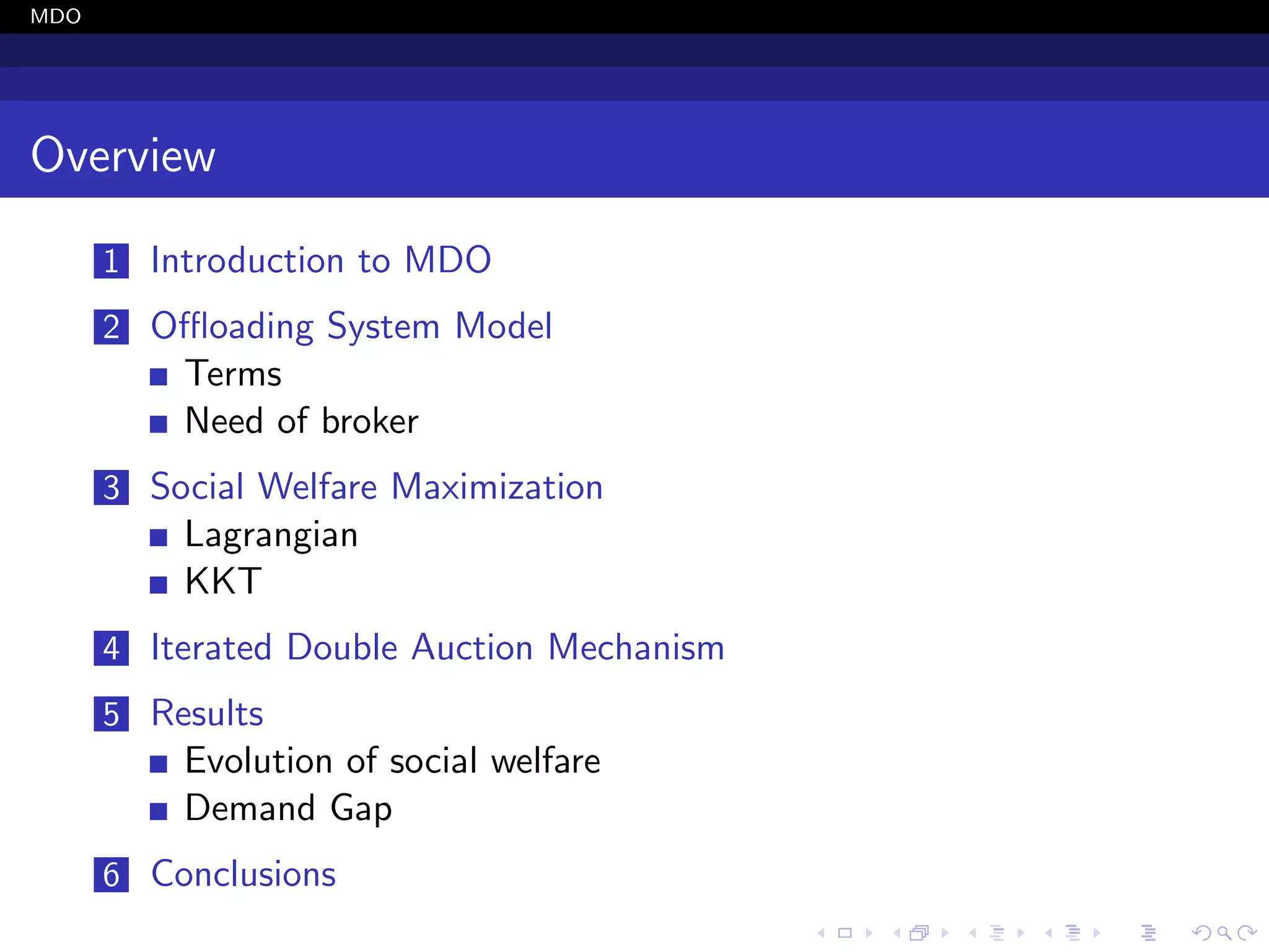 This document provides an overview of mobile data offloading techniques for next generation cellular networks. It discusses the expected growth in mobile data traffic and need for offloading to WiFi networks. It presents a model for the offloading system involving mobile network operators, base stations and access points. It formulates the offloading problem as an optimization to maximize social welfare. An iterated double auction mechanism is proposed to solve the optimization in a distributed manner while achieving the desired economic properties. Results show the mechanism enables the requests and admissions to converge over iterations, minimizing the demand gap.