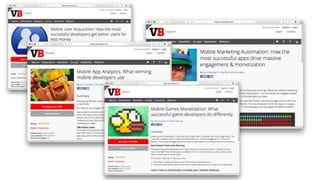The document discusses insights from a VentureBeat roadshow focusing on mobile user acquisition and marketing strategies. Key topics include effective monetization methods, the popularity of various advertising features, and a comparison of major mobile marketing automation players. The conversation emphasizes the importance of experimentation in achieving success in the mobile marketplace.