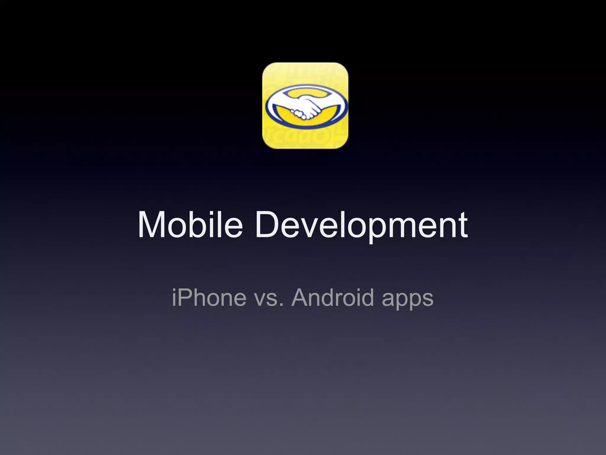 This document summarizes key differences between developing mobile apps for iPhone vs Android. It discusses that iPhone development uses Objective-C and Xcode on Mac hardware, while Android uses Java and Eclipse on Linux. It notes that iPhone apps have tab navigation and a back button, while Android uses standard icons and XML for navigation. It recommends focusing on the core objective, keeping it simple, listening to users, and extensive testing when developing for either platform.