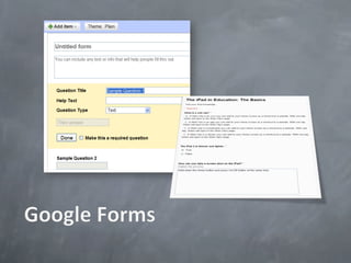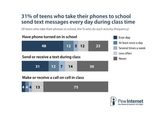 The document discusses the significant role of mobile devices in education, highlighting their prevalence among students and the educational implications of their use. It also emphasizes the need for critical 21st-century skills and examines the disconnect between parents and children regarding internet safety and device usage. Additionally, it presents various tools and resources for educators to facilitate learning through mobile technology.