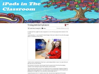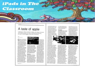 The document discusses the positive impact of introducing mobile devices at Casllwchwr Primary School. It outlines how devices have enhanced learning across the curriculum, improved engagement particularly for boys and SEN students, and strengthened home-school links. The school has seen increased enthusiasm for learning. Their successes have received recognition from politicians and in the media.