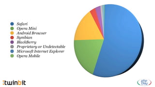 The document discusses mobile application development strategies and technologies, emphasizing the need to define a strategy before choosing technology. It compares native, HTML5, and hybrid apps, outlining their pros and cons, and introduces tools like PhoneGap and Titanium for building applications across platforms. The authors encourage a broader perspective on web development, highlighting its request and response nature beyond just static HTML pages.