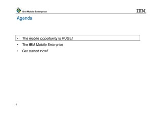 The document discusses IBM's Mobile Enterprise strategy. The key points are: