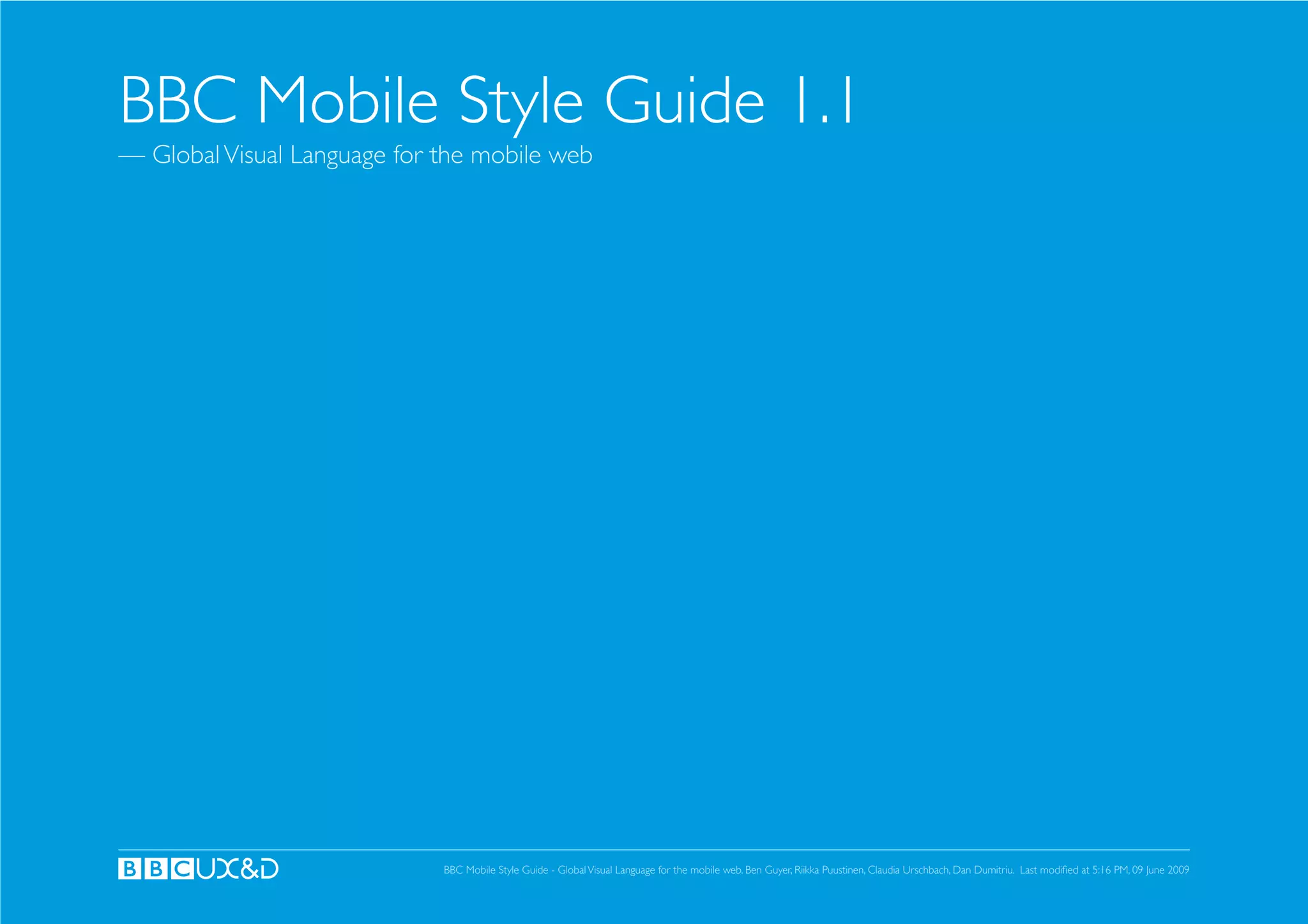 The BBC Mobile Style Guide outlines principles and standards for creating mobile web pages, aimed at ensuring consistency and quality across BBC mobile platforms. It covers areas like design principles, usability considerations, and technical requirements, and serves as a resource for designers, developers, and producers. The guide incorporates visual guidelines and specifies the structure, navigation, and editorial principles that should be adhered to for optimal user experience.