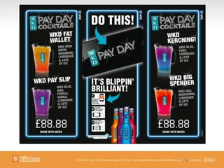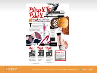 This document presents Blippar, a mobile visual discovery platform utilizing augmented reality (AR) to create interactive experiences through image recognition. It details the platform's capabilities, success metrics, and various case studies, illustrating how brands have effectively engaged consumers using Blippar's technology. The document also emphasizes the importance of content investment and consumer education in leveraging AR for marketing.