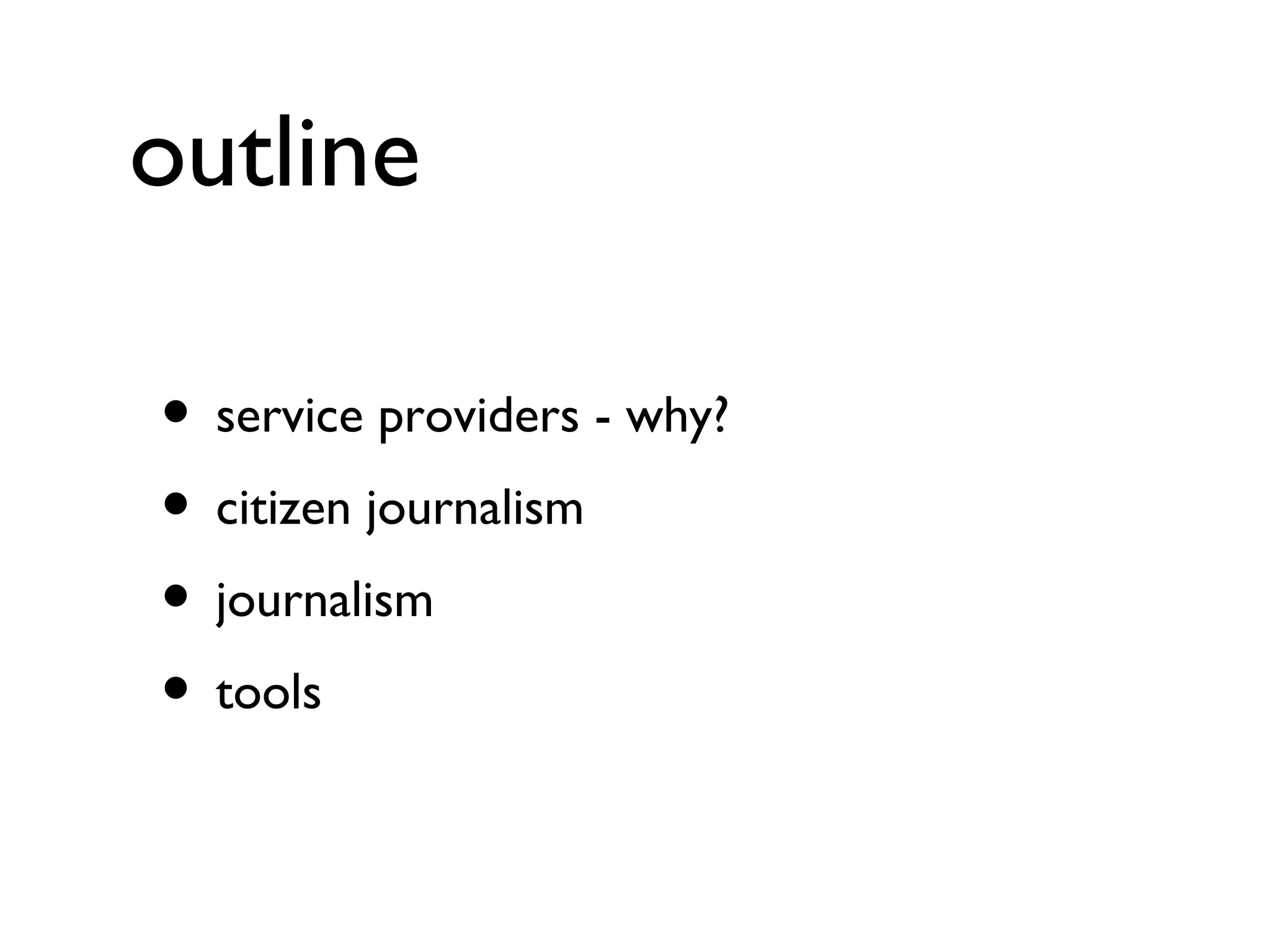 The document discusses the role of mobile service providers in citizen journalism, emphasizing how they help gather demographic data and connect social networks. It highlights the implications of privacy concerns, noting that personal data is collected without explicit consent. Various tools and applications are mentioned that facilitate citizen reporting and real-time sharing of experiences.