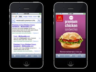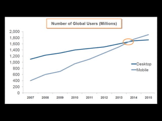 The document discusses developing an effective mobile marketing strategy, outlining key channels like SMS, mobile websites, apps, and location-based services. It provides best practices for using these channels, such as getting permission for SMS campaigns, optimizing websites for mobile, and giving incentives for location check-ins. The overall goal of a mobile strategy is to generate sales, increase brand awareness, improve customer support, and enhance customer loyalty through targeted mobile communications.