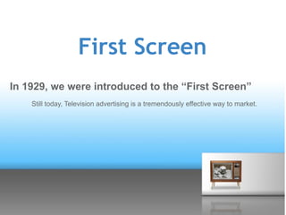 The document discusses the evolution of digital marketing from the first screen of television to the current third screen of mobile devices, noting that mobile marketing provides new opportunities for brands to engage consumers anytime and anywhere through techniques like SMS, mobile applications, and location-based services. It emphasizes that most websites are not currently mobile-friendly and provides recommendations for developing a mobile strategy and deciding whether to create a mobile-optimized site or native mobile app.
