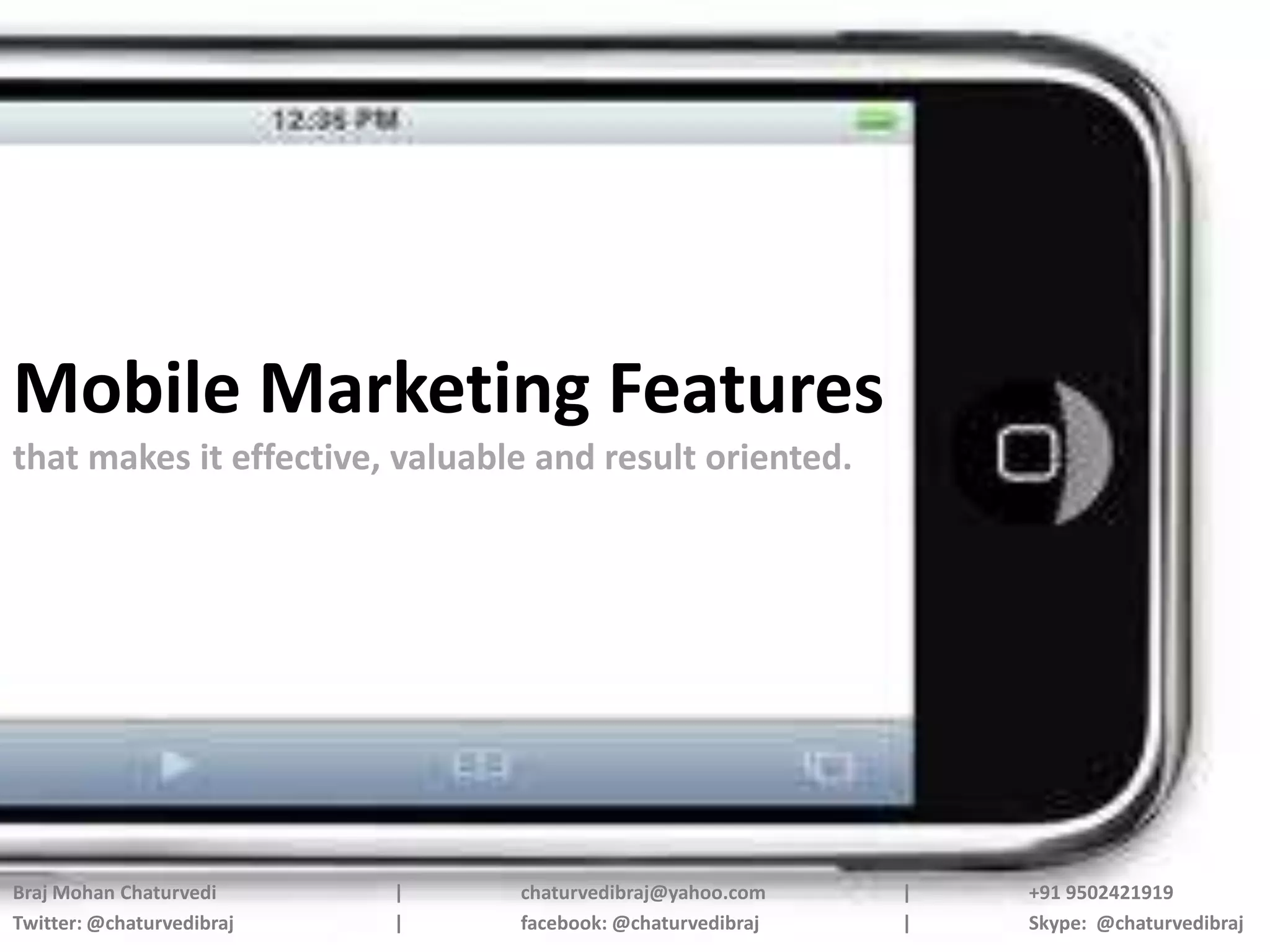The document outlines the effectiveness of mobile marketing, emphasizing its reach, affordability, and personalization capabilities. Mobile campaigns are quick to deliver, provide high engagement, and foster long-term customer relationships. It highlights mobile marketing's ability to integrate with existing strategies and its potential for viral sharing through social media platforms.