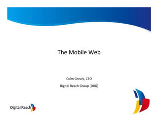 The document discusses the shift from PC-focused digital advertising to mobile platforms. It notes that within 2 years, 60% of digital advertising worldwide will be directed to mobile platforms, compared to just 2% currently. It provides an overview of the Irish smartphone market and emerging mobile formats like tablet operating systems. It also discusses travel apps, mobile websites, QR codes, and considerations for developing a mobile strategy and mobile site.