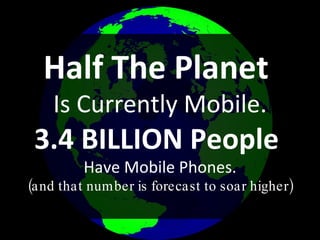 The document discusses the significant opportunities in mobile marketing, highlighting the increasing number of mobile phone users and the shift in communication and purchasing behaviors. It emphasizes the need for businesses to engage with both B2B and B2C markets through innovative mobile strategies, such as mobile websites, SMS alerts, video content, and apps. Additionally, it outlines various mobile tools and services, including location-based services and mobile barcodes, urging marketers to harness these technologies for enhanced customer interactions and marketing effectiveness.