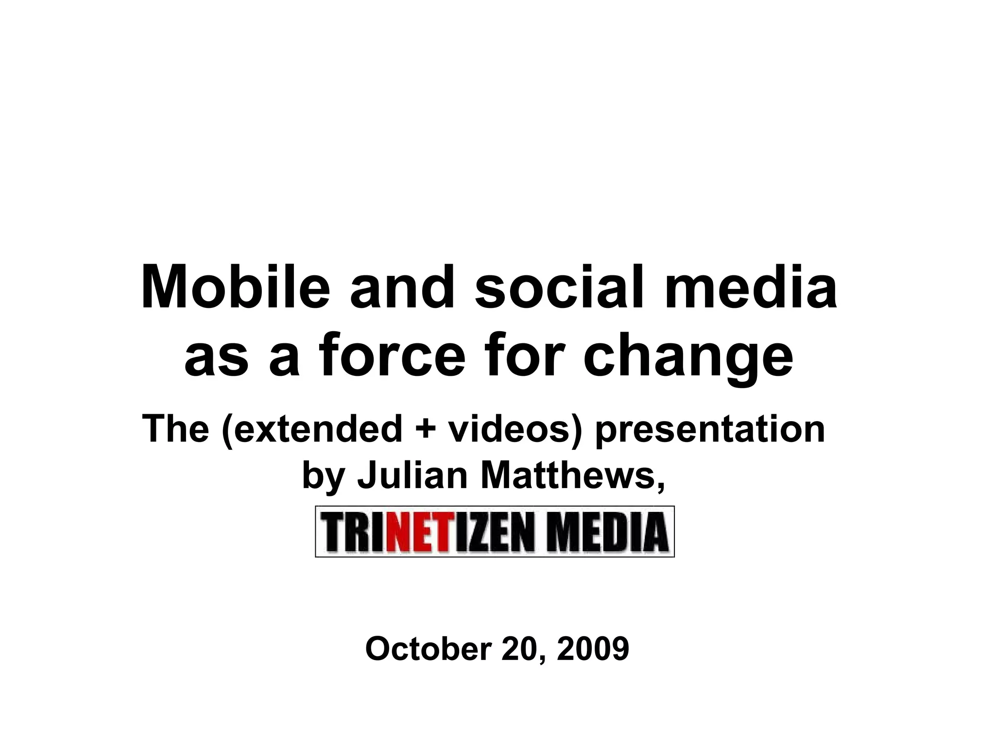 The document explores the impact of mobile and social media on social change, highlighting case studies from Iran, India, and Kenya. It emphasizes how these platforms empower young, urban individuals to mobilize and protest against injustices, showcasing examples like the Neda video in Iran and the Pink Panty protest in India. Additionally, it discusses the evolution of journalism into a form of citizen journalism where individuals actively participate as creators and organizers.
