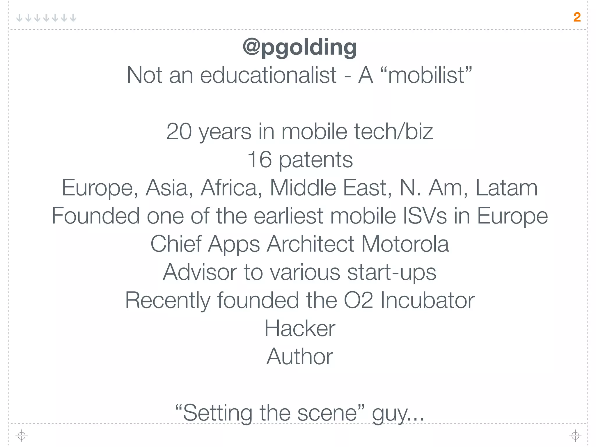 This document summarizes Paul Golding's presentation on mobile technology trends at the 2010 Eduserv Symposium. It discusses the evolution from Mobile 1.0 to Mobile 2.0, highlighting increasing processing power, usability and productivity of mobile devices. It also notes the proliferation of smartphones and growing mobile internet and app usage. Golding argues that mobile is becoming "everyware" and transforming how people organize their lives and interact in real-time through their devices. He envisions a future of augmented reality and an "Internet of Things" where most digital services are mobilized.