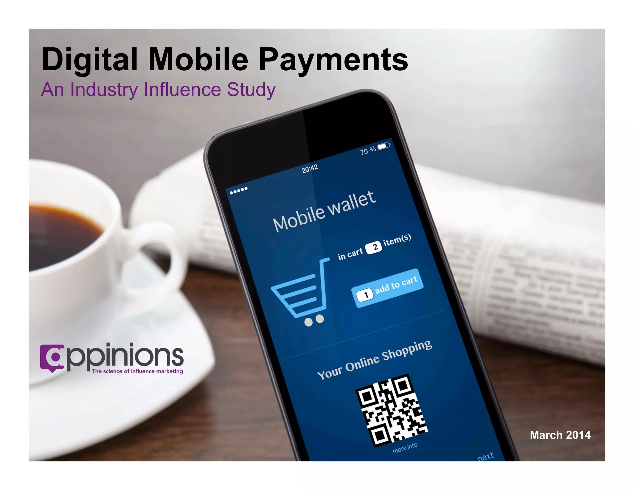 The mobile payments market is rapidly changing as new technologies emerge. A study analyzed over 200 million opinions to determine the most influential companies, executives, and events shaping conversations around digital mobile payments. PayPal and Apple have the highest influence scores while traditional payment providers like Visa are absent. International banks and wireless carriers also demonstrate more influence than US firms. An analysis of business news events found that while Apple's announcement of interest in mobile payments was the most influential, it generated only moderate reaction compared to other technology news.