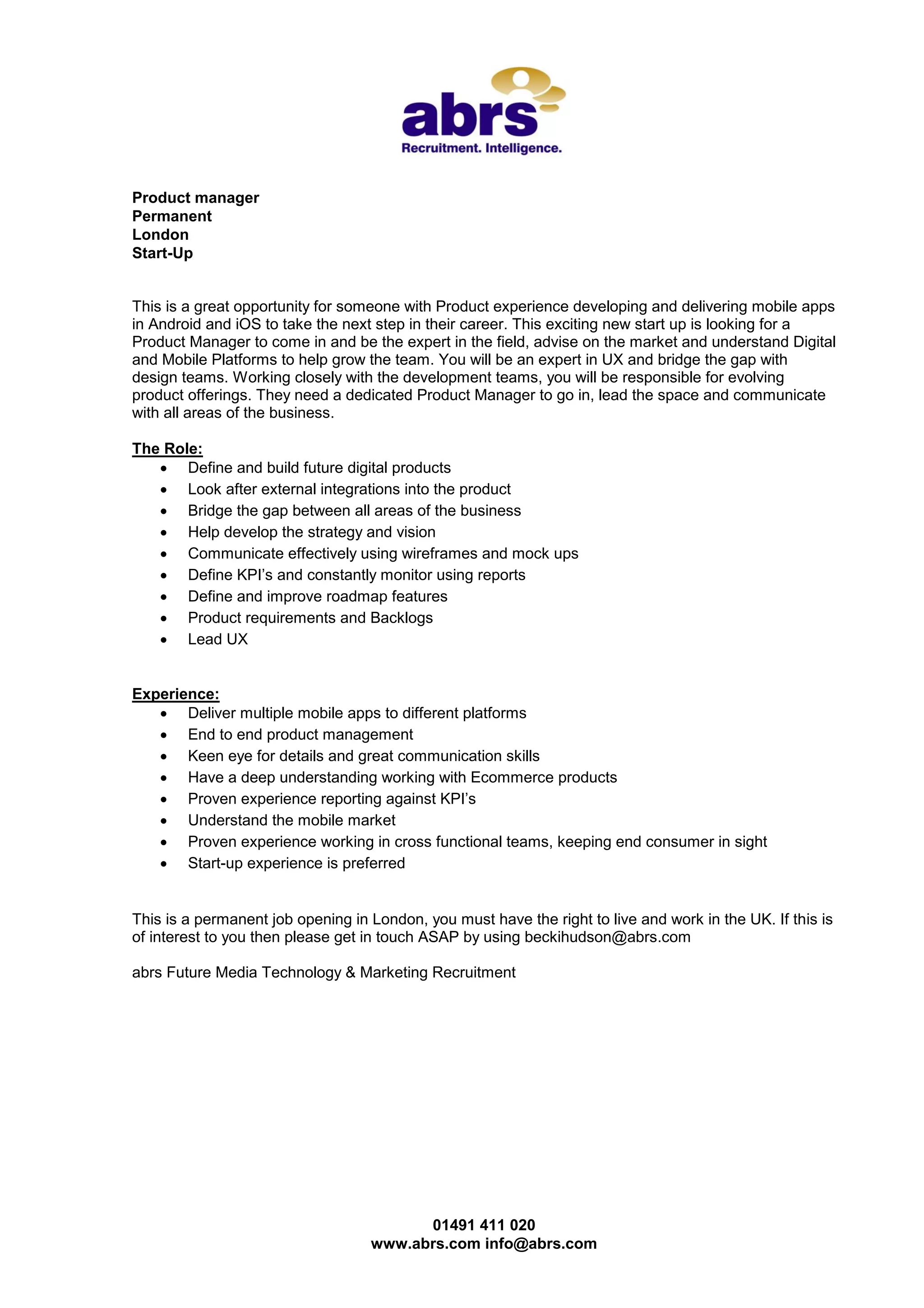 This start-up is seeking a Product Manager based in London to define and build future digital products, lead UX efforts, and effectively communicate with various teams. The ideal candidate has experience developing mobile apps for both Android and iOS platforms, managing end-to-end product development, and working in cross-functional teams with a focus on the customer experience. Prior experience in a start-up is preferred.