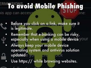 The document outlines steps to protect mobile phones from viruses, similar to protecting computers. It advises users to turn off Bluetooth discoverable mode and stay updated on security measures. Notable security software options are mentioned, including Bitdefender and McAfee.