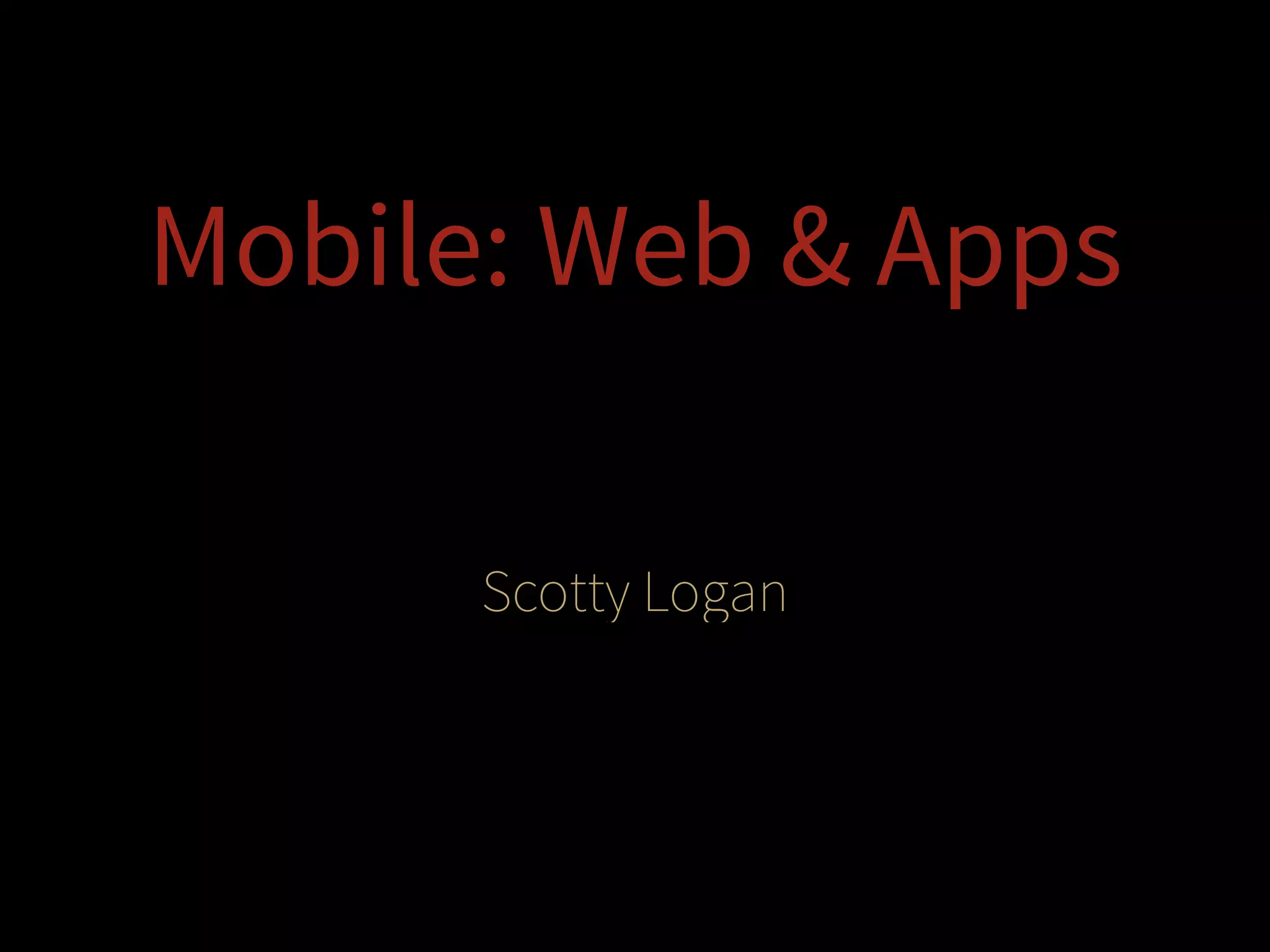 This document discusses mobile web and app development. It begins with an introduction and background about the author. It then covers early web development using basic HTML. It discusses the evolution to responsive design and content-first approaches. The document surveys different mobile platforms and compares native apps, hybrid apps, and web apps. It recommends using responsive design and frameworks like Bootstrap to build mobile-friendly websites.