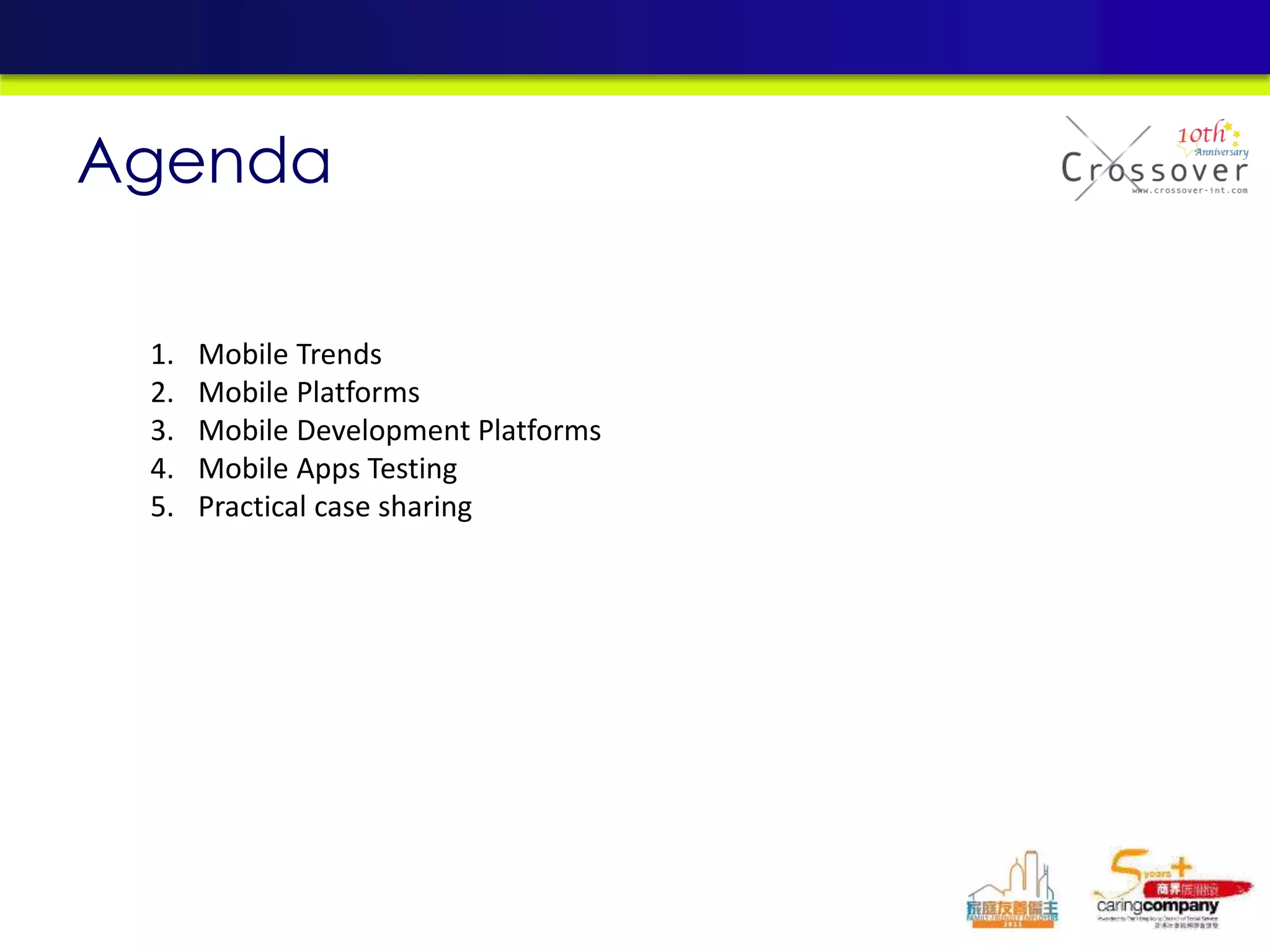 This document provides an overview and agenda for a presentation on practical mobile app testing. It discusses trends in mobile devices and platforms, differences between mobile web and apps, platforms for mobile development, challenges in mobile app testing, and strategies and best practices for testing. It also presents a case study of a mobile app called "SOS! Sick Bird" that helps users in Hong Kong locate nearby government clinics.