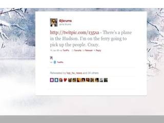 The document discusses how smartphones and mobile apps are changing journalism. It provides tips for journalists on using social media like Twitter for live reporting and breaking news, tools for mobile reporting, and publishing content on mobile. Reporters are encouraged to tweet live from events using hashtags, take photos and videos to publish, and to search Twitter for leads and eyewitnesses to events. The document recommends apps and tools like Google Voice, Dropbox, Evernote, Qik and WordPress that can help journalists with productivity, livestreaming video, note-taking and mobile publishing.