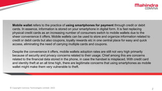 Mobile wallets enable users to make payments using smartphones by storing financial and loyalty information digitally, offering convenience over physical cards. Despite security concerns regarding personal data on mobile devices, mobile wallets are generally considered secure due to encryption and various protective measures implemented by service providers. Users are advised to choose reputable wallet providers and adopt best practices for security to maximize their safety when using mobile wallets.