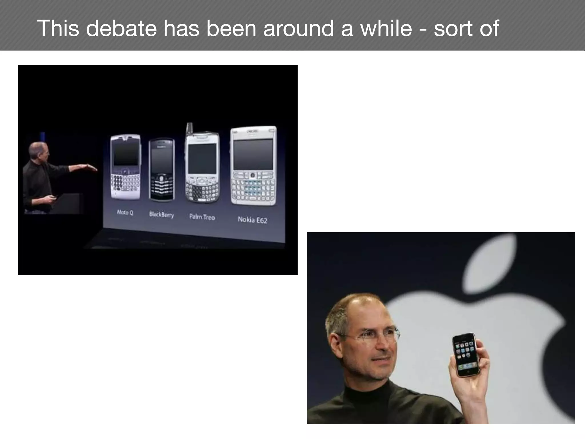 The document discusses the ongoing debate between mobile web applications and native apps, highlighting that the decision should be based on user experience and specific needs rather than technology alone. It emphasizes the shifting user preferences towards apps due to their perceived speed and immersion, while also acknowledging the significant overlap in usage statistics between native and web applications. Ultimately, the author suggests weighing the pros and cons of both approaches, advocating for native apps when unique hardware features or superior user experience are required.