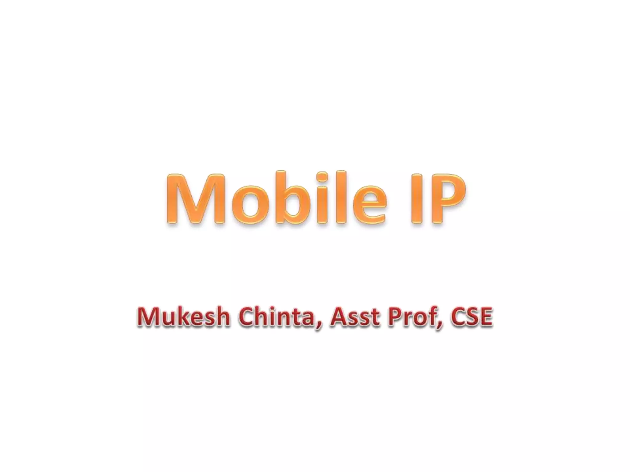 Mobile IP is an open standard that allows devices to change networks while maintaining the same IP address. This allows ongoing connections and applications to continue without being dropped when the device roams to a new network. Mobile IP works by assigning the device two IP addresses - a home address that stays the same and a care-of address that changes based on the new network point of attachment. Tunneling is used to forward packets to the device's current location. Mobile IPv6 improves upon Mobile IPv4 by simplifying the mobility management process and integrating support for route optimization.