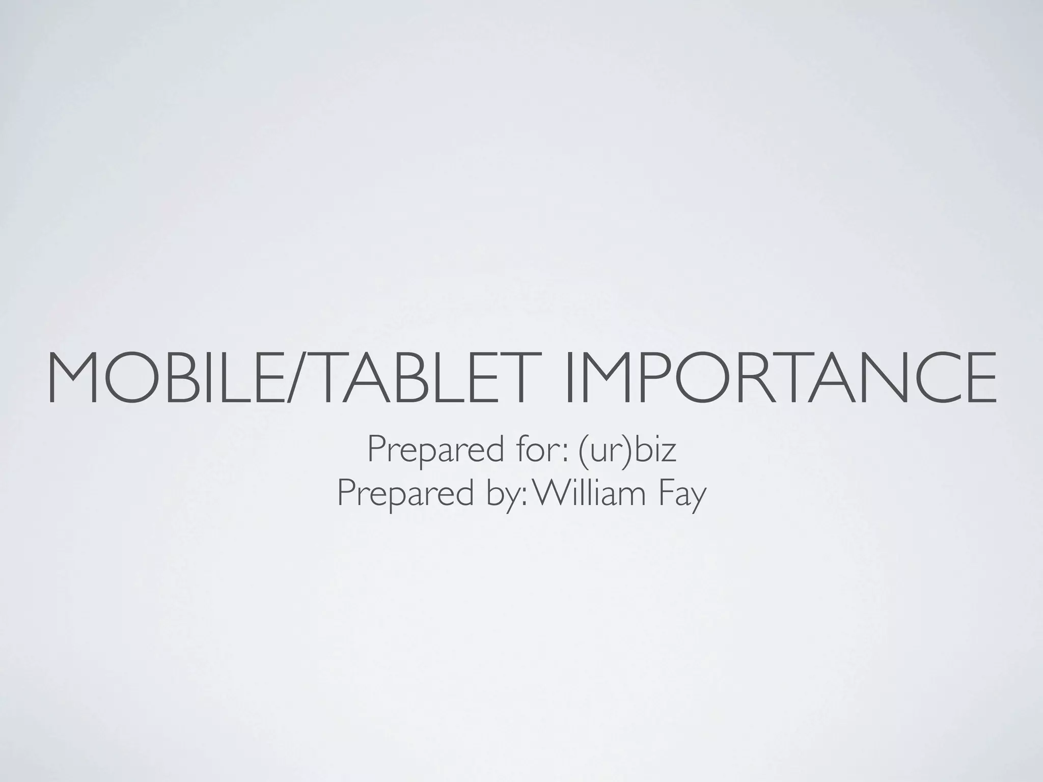 This document discusses the growing importance of mobile devices and tablets for internet usage. It notes that mobile internet usage now accounts for 10% of all usage, up from 1% in 2009. 29% of US adults now own a tablet, up from 2% in 2009. The document recommends that websites adapt to the smaller screen sizes of mobile devices by removing unnecessary content, using responsive design, focusing on core calls to action, and building both mobile-optimized websites and dedicated apps. It provides examples of how Gmail and Facebook have successfully adapted and provides recommendations for how (ur)biz can build for mobile.