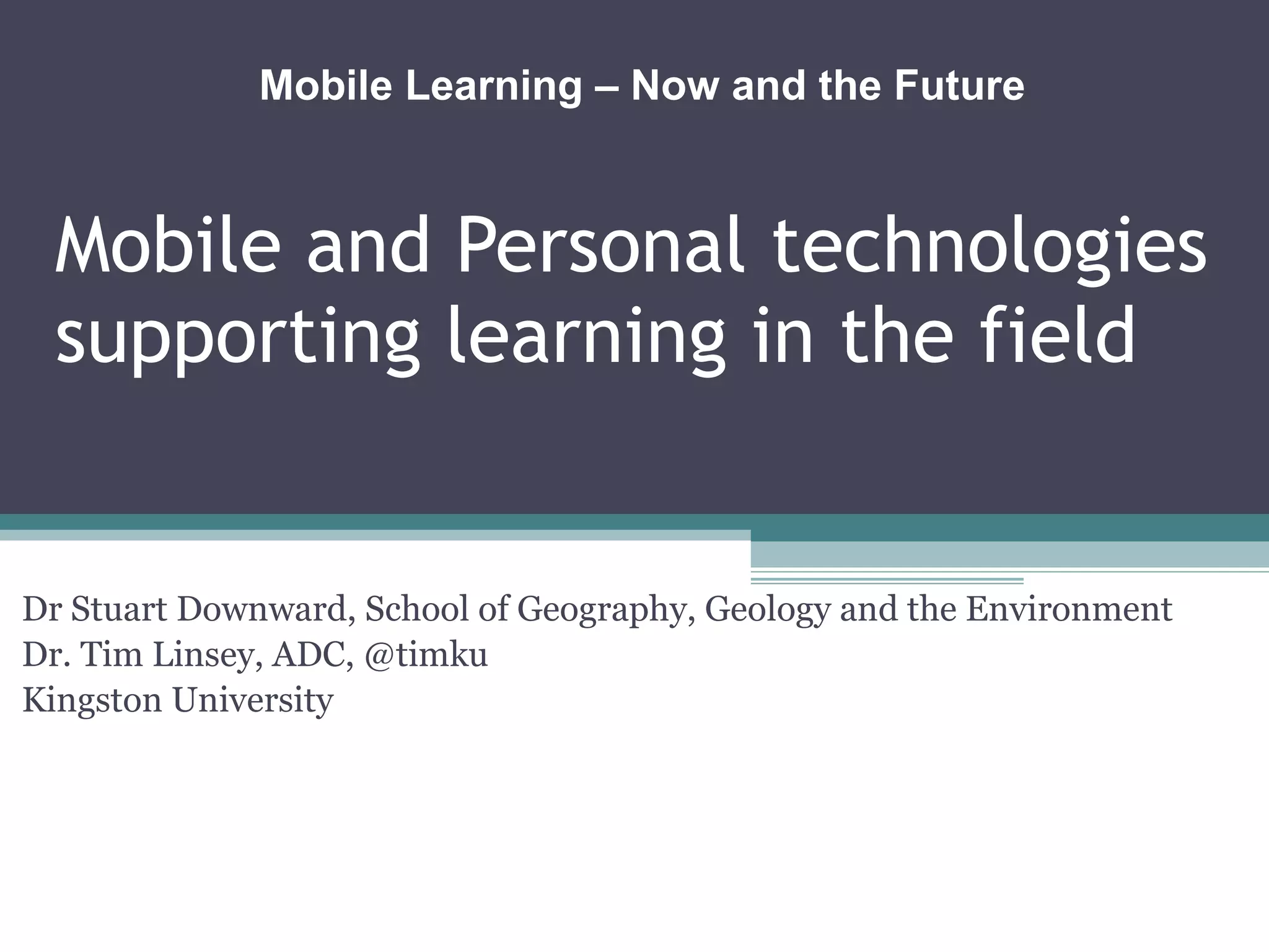 - The document discusses a project between Kingston University and De Montfort University to develop mobile and personal technologies to support student learning during field trips and work placements.