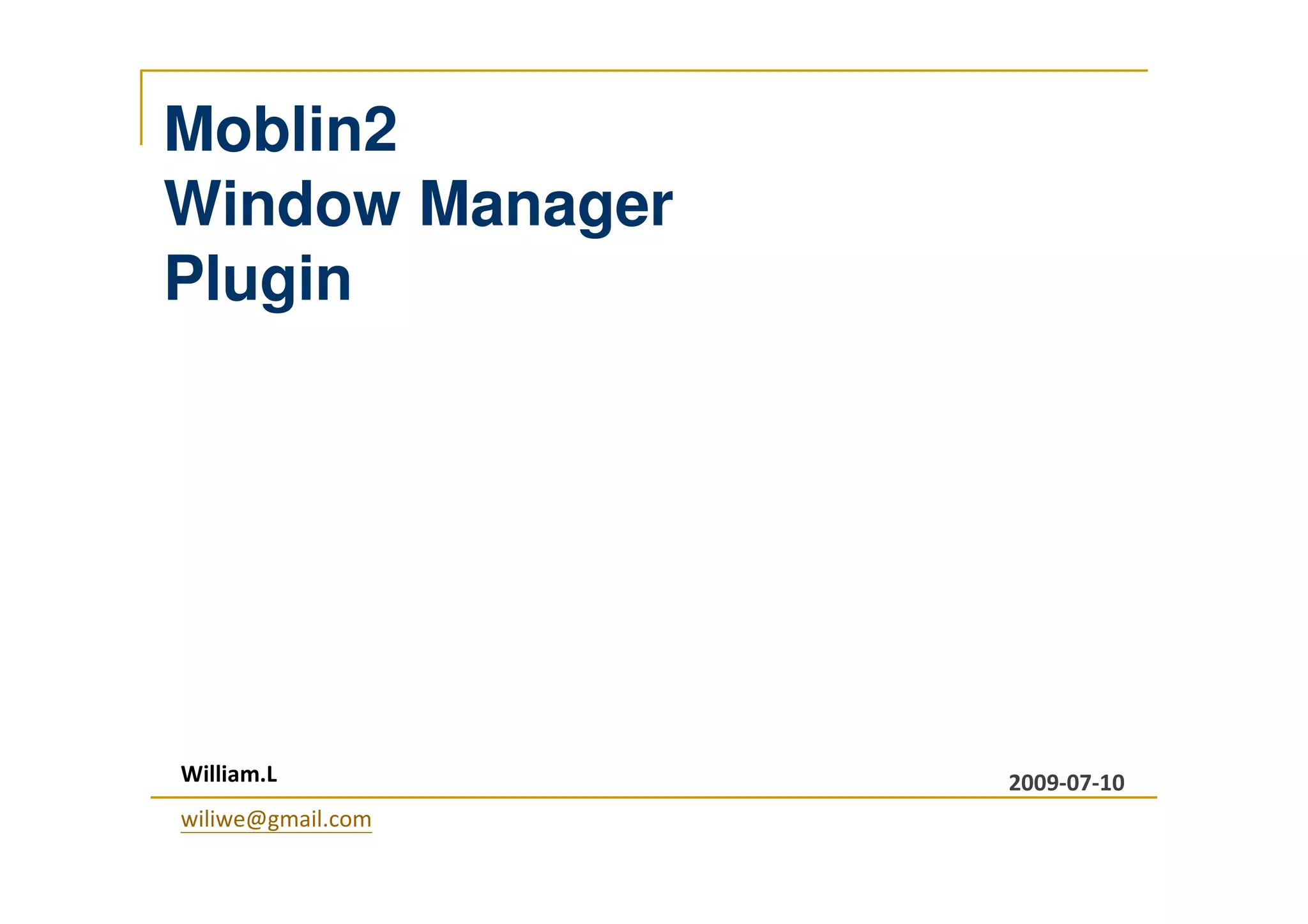 The document summarizes key aspects of the Moblin2 window manager Mutter including: