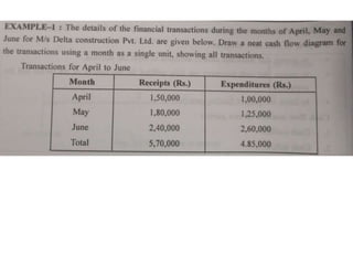 The document discusses the role of economic decision-making in construction management, emphasizing methods such as the out-of-pocket commitment, payback period, and average annual rate of return for evaluating project alternatives. It outlines a five-step framework for making project economic decisions, addressing problem identification, alternatives, criteria, evaluation, and decision-making. Additionally, it contrasts public and private projects, highlighting the importance of the benefit-cost ratio in evaluating public projects funded by the government.