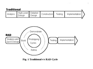 The document outlines the System Development Life Cycle (SDLC), emphasizing its stages: conception, development, maturity, and decline while discussing various system analysis and design tools such as Data Flow Diagrams (DFDs) and decision tables. It details the roles of key personnel in system development including system analysts, database administrators, and database designers, while also highlighting different development models like the waterfall model and rapid application development (RAD). Furthermore, it covers the systematic approach to improving business functions through computerized information systems, including feasibility studies and system evaluation.