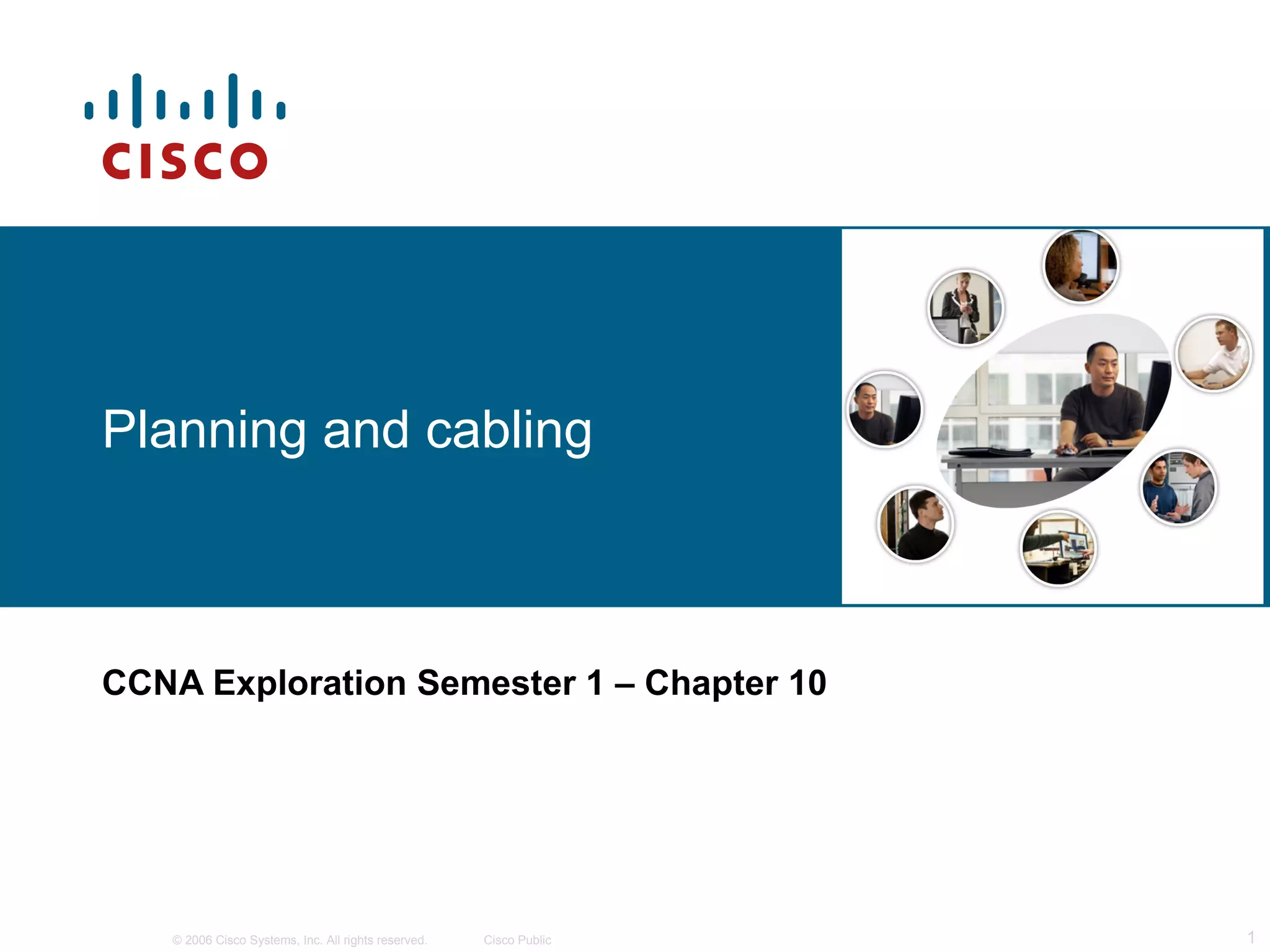 The document discusses planning and cabling for a CCNA Exploration course. It covers topics like identifying media for LANs and WANs, cable types and standards, switch and router configurations. Examples are provided for designing addressing schemes for networks using VLSM and subnetting techniques. The document compares different network designs and components like hubs, switches and routers. It also discusses cable lengths, types and connections used within networks and between networks.