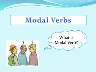 Modal verbs in English include can, could, had better, may, might, must, ought to, shall, should, and will. They are used to express ideas like ability, permission, possibility, suggestion, obligation, and future time. The normal position for a modal verb in an affirmative sentence is after the subject. Examples are given such as "He may start the game" and "You can call me 'guys'." The video lesson provides more understanding about modal verbs and their forms and meanings. Polite requests with modal verbs and "would you mind" are also discussed.