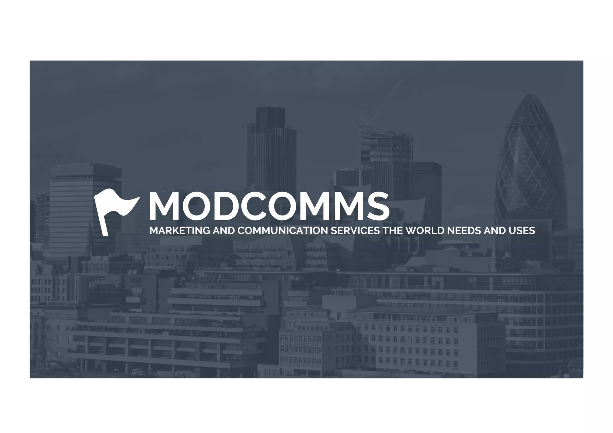 ModComms is a marketing and communications agency that specializes in innovative approaches to client challenges. They strive to innovate in everything they do to help clients stand out from competitors. ModComms offers services including marketing strategies, events, video products, and digital services. The company is made up of experts in areas like content, logistics, digital, and strategy. They work with clients across industries to develop customized solutions through thinking, visualizing, writing, video production, and events.