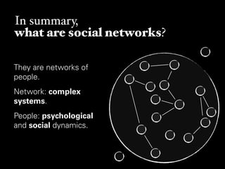 1) The document discusses motivational design for social networks. It outlines four pillars of motivational design: functional needs, social usability, relational motivations, and circadian activity flow. 2) Relational motivations that fuel social networks are discussed, including competition, excellence, curiosity, and affection. Examples are given for how different social networks incorporate these motivations. 3) Social usability and its properties like interpersonal relations, identity, and communication are covered. Examples show how networks like Facebook, Skype, and FriendFeed use these properties. 4) Circadian activity flow is defined as the sequence of actions people take during a day based on priorities. Twitter is used as an example