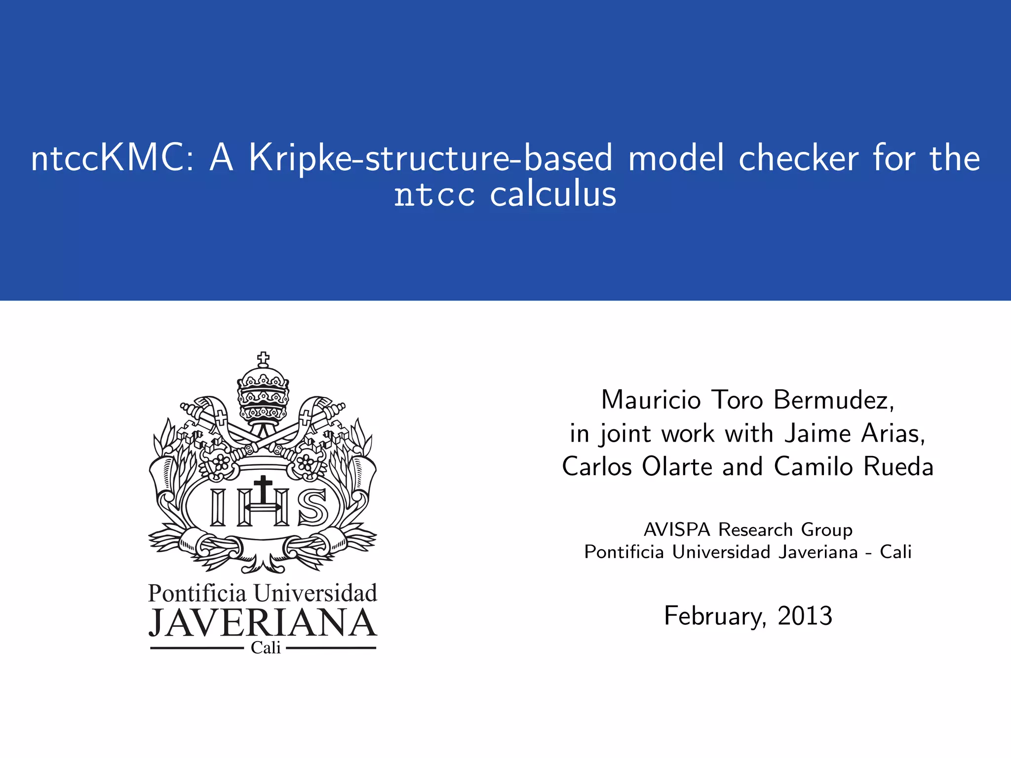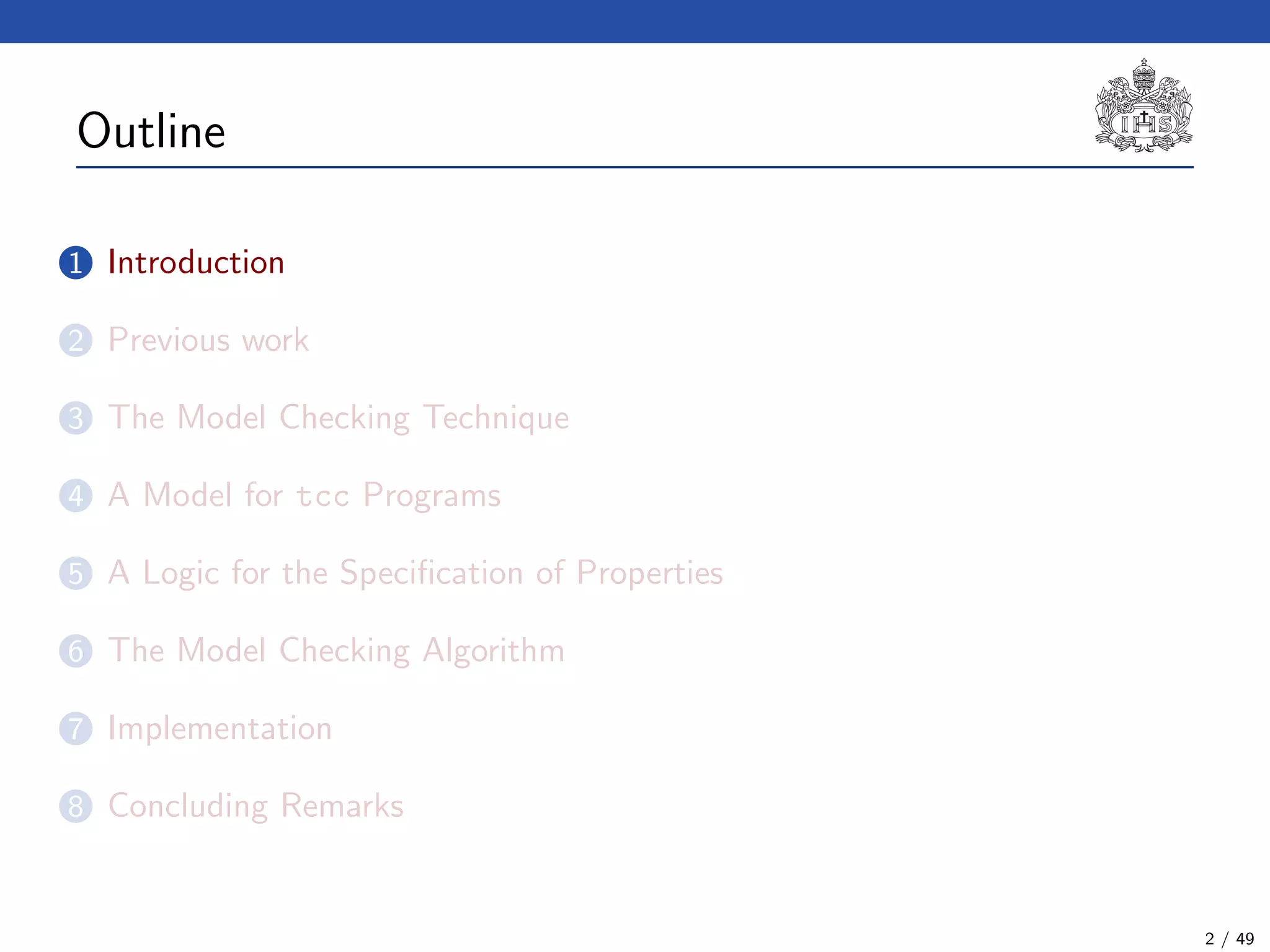 The document describes a model checking technique for the ntcc calculus. It involves constructing a tcc structure model from ntcc programs by labeling occurrences of agents. The tcc structure is a variant of a Kripke structure that models the behavior of ntcc specifications. Properties are formally specified using temporal logic. The model checking algorithm then checks if the tcc structure model satisfies the temporal logic properties.
